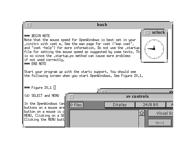 developed, and maintained primarily by Sun Microsystems Inc. XView is simply the port on Linux. When I talk about OpenWindows, I will refer to XView for Linux in this chapter.