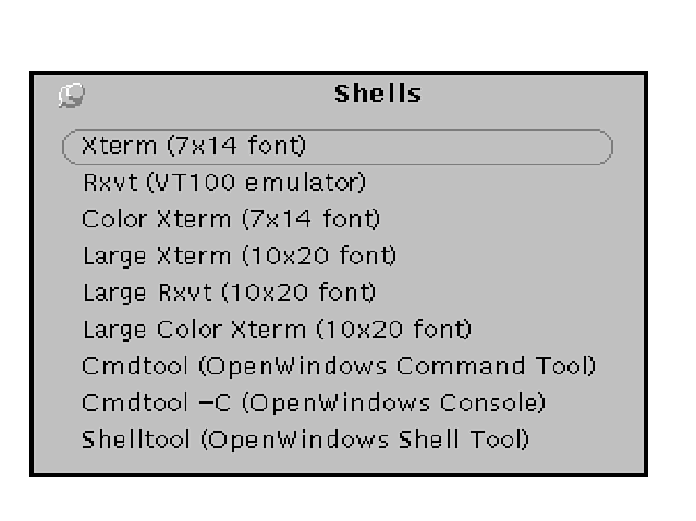 XView supports menus of the form shown in Figure 24.3. This is a sample menu containing options for you to choose. These menus are called pop-up menus.