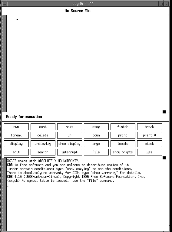 When you start xxgdb, a window, depicted in Figure 27.1, opens on your screen.