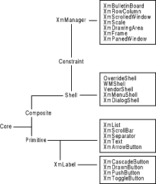 Figure 32.1. The toolkit hierarchy for X, Xt, Motif.