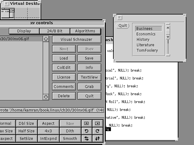 The figures shown in this chapter depict the program being run from the dwm window manager.
