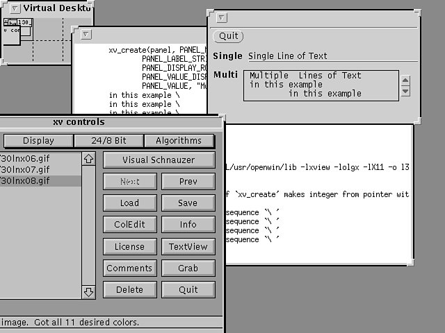 XView has a lot of options for displaying data. This section will only cover a few portions of this feature. Please refer to the man pages for Text in /usr/openwin/man. Let's get started with some of the basics, though. A sample application is shown in