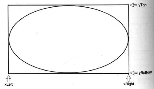 The definitions are of xLeft, yTop, xRight, and yBottom are a bounding box for an ellipse as shown in Figure 58.2.