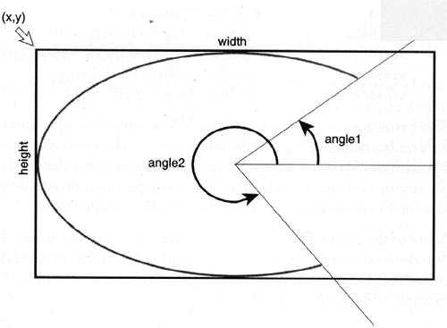 The definitions of x, y, width, height, angle1, and angle2 are shown in Figure 58.3.