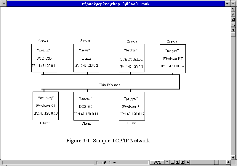 In the next chapter I expand the coverage of TCP/IP on the sample network by looking at client implementations. I look specifically at how you can implement TCP/IP for DOS, Windows 3.x, and Windows 95. Any of the operating systems mentioned in this chapter can act as clients to any of the servers, as well.