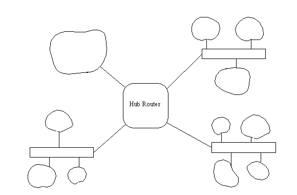 Figure 13.5. Using a hub router to connect LANs.