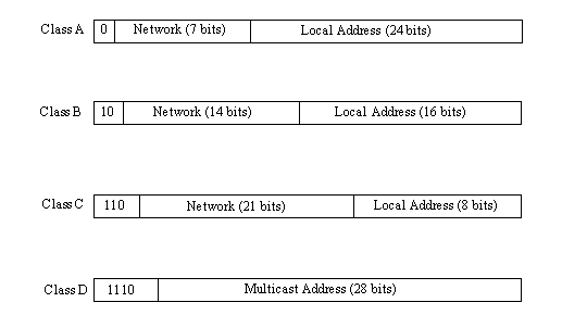 Figure 13.6. The four IP address class structures.