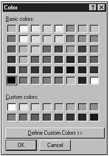 box or by defining his or her own custom colors by clicking the dialog box's Define