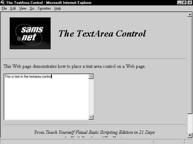 Consider the sample Web page shown in Figure 8.9. This simple textarea Web page, called simptxa.asp, is on the CD-ROM that accompanies the guide.