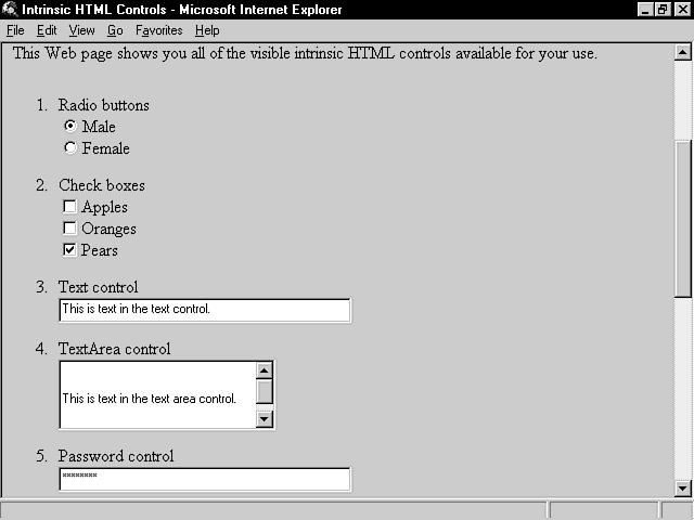 Figure 9.7 : A Web page that shows all the intrinsic HTML controls.