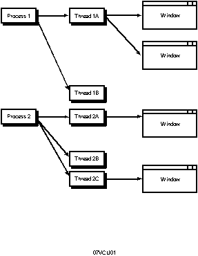 Figure 7.1. Processes, threads, and windows.