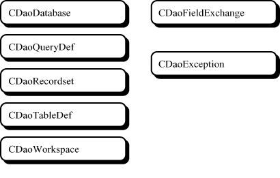 In addition to the five fundamental DAO classes, DAO operations make use of two additional classes: CDaoFieldExchange and CDaoException.