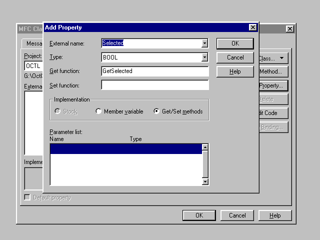 Although we have not explicitly added any methods to the OCTL control, we have, in fact, added three methods nevertheless; these are the get/set methods that we used for our two properties.