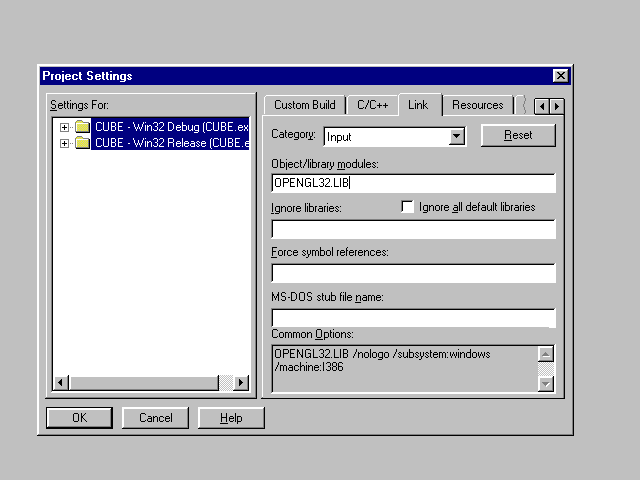cl cube.c user32.lib gdi32.lib opengl32.lib