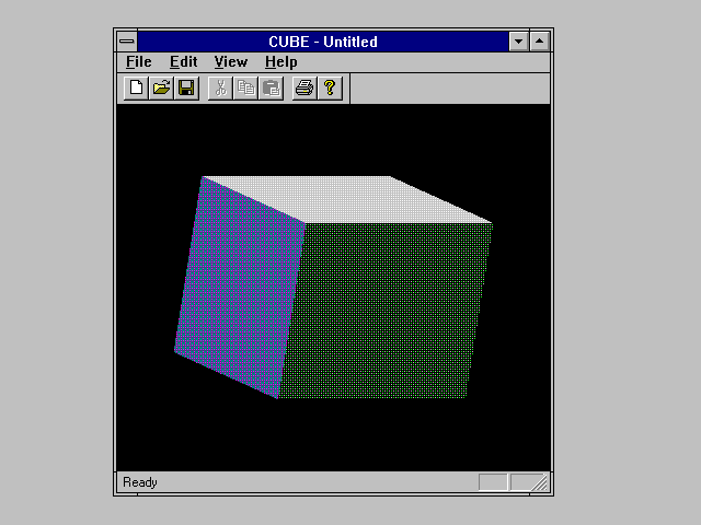 The application should display a window with a three-dimensional image of a cube rendered in it, similar to that shown in Figure 41.2.