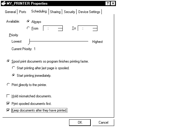 There are a few considerations that you should be aware of before you start configuring a network of printers connected to your NT servers and other workstations. The first extra consideration involves scheduling access to the printer. When you have a single tasking operating system such as DOS accessing a locally-attached printer, there is no problem figuring out who has access to the printer. You print directly to the printer with the only job that is running at the time. When you have an operating system such as Microsoft Windows, you have the possibility of queuing up several print jobs which runs effectively in the background while you are doing other processing.