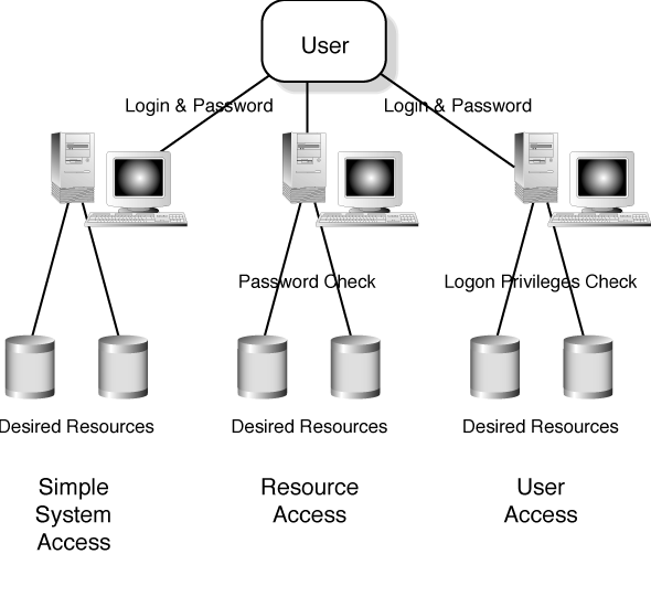 Perhaps the simplest model is what I am calling the simple access system. It consists of a login ID and password combination that allows you access into the computer.