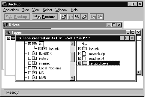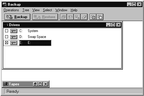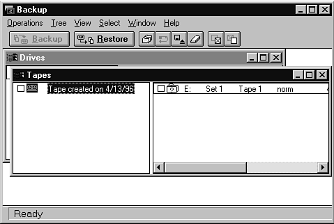 The chapter continued with a discussion about backing up Windows NT. You got some advice on what to look for in choosing a tape backup device for your sever, as well as how to use NTs built-in tape backup program for backing up your server.