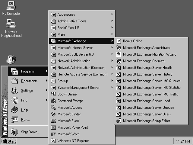 The next key feature of NT that BackOffice relies upon involves the system management tools and utilities. Much like user access control, each application could write its own management and maintenance utilities. Administrators would have to get into the mindsets of each of the people who wrote the various tools before they could become proficient in using them. However, because most of these tools perform the same conceptual functions (showing a log of warning messages and other events, or starting and stopping the processes associated with the applications, for example), it would be much easier on the administrators if they used one tool to maintain all these applications. BackOffice still has a few separate administrative tools that are unique to the various packages, but they do make use of a number of common utilities including the following: